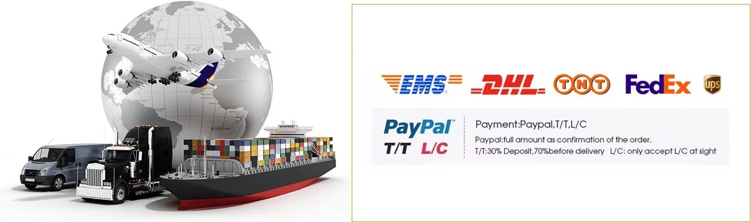 Stabil szállítási idő, lerövidíti a szállítási időt, csökkenti a szállítási késleltetés kockázatát, biztosítja a termékszállítás képességét, hogy az ügyfelek a tervek szerint végezzék el a termékértékesítést. Előzetesen megbízható kézbesítési dátumot fogunk biztosítani az ügyfél megrendelési követelményei és mennyisége szerint. A zökkenőmentes kézbesítés biztosítása érdekében olyan harmadik fél platformon keresztül is végezhetünk tranzakciókat, mint a www.alibaba.com.
